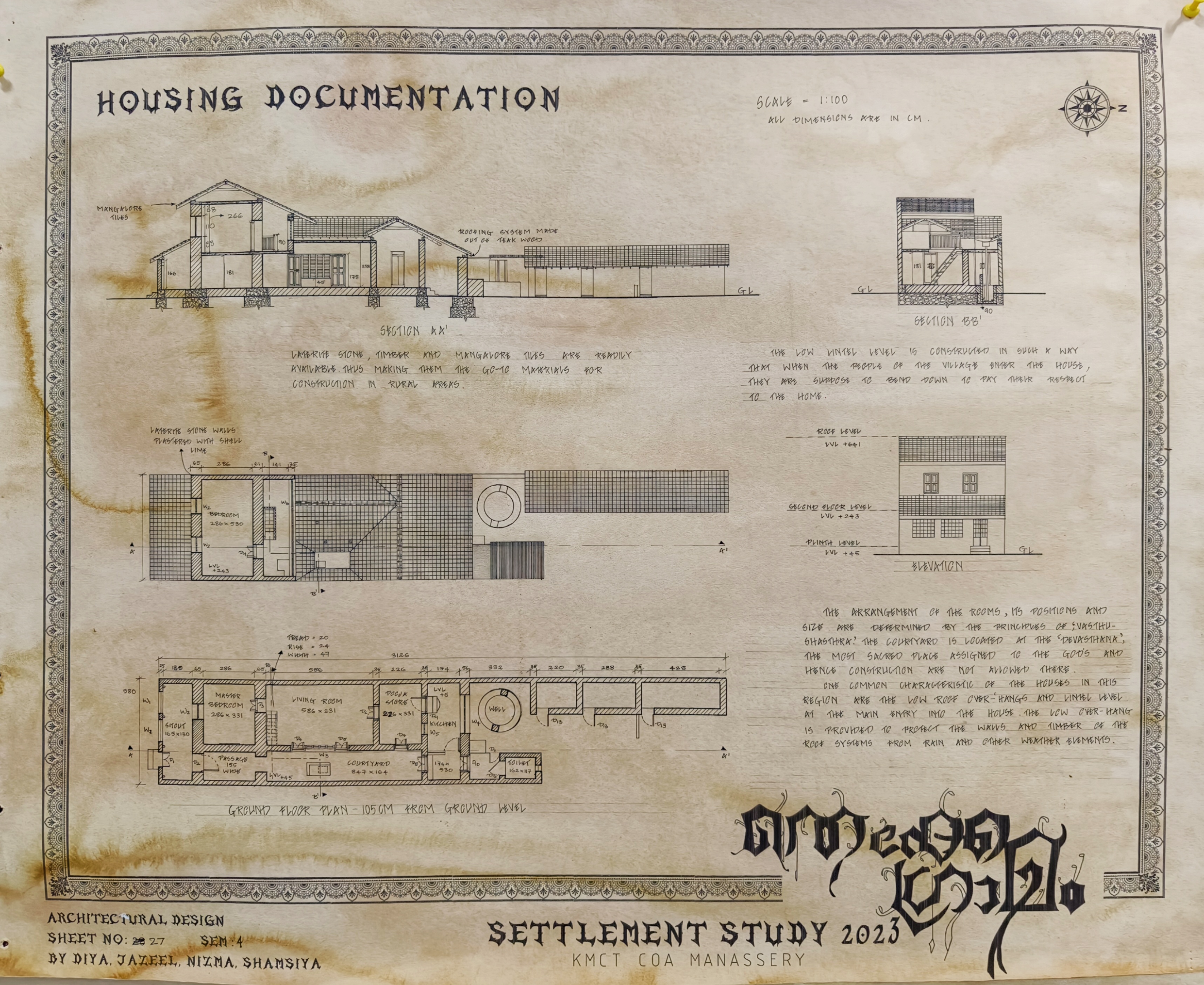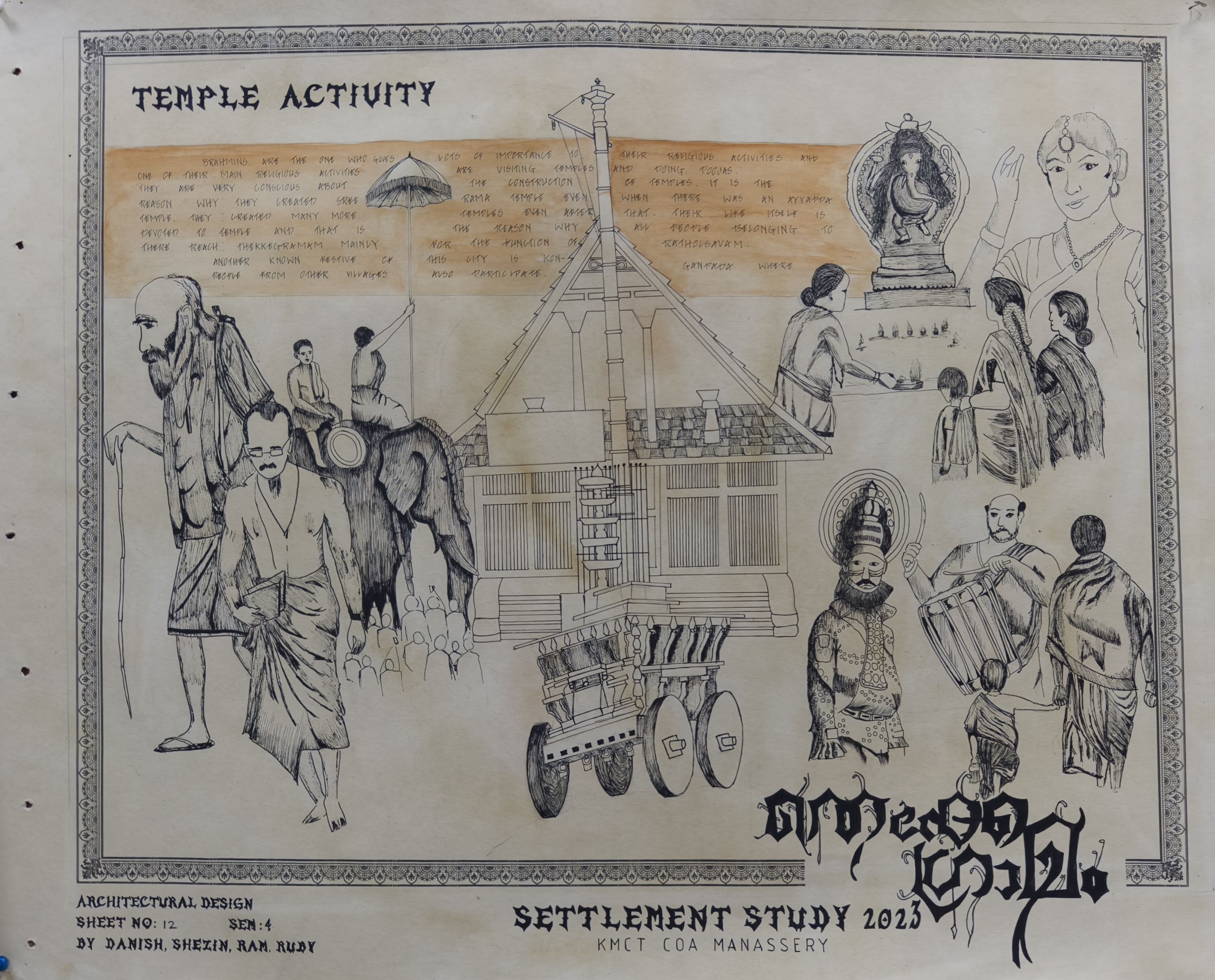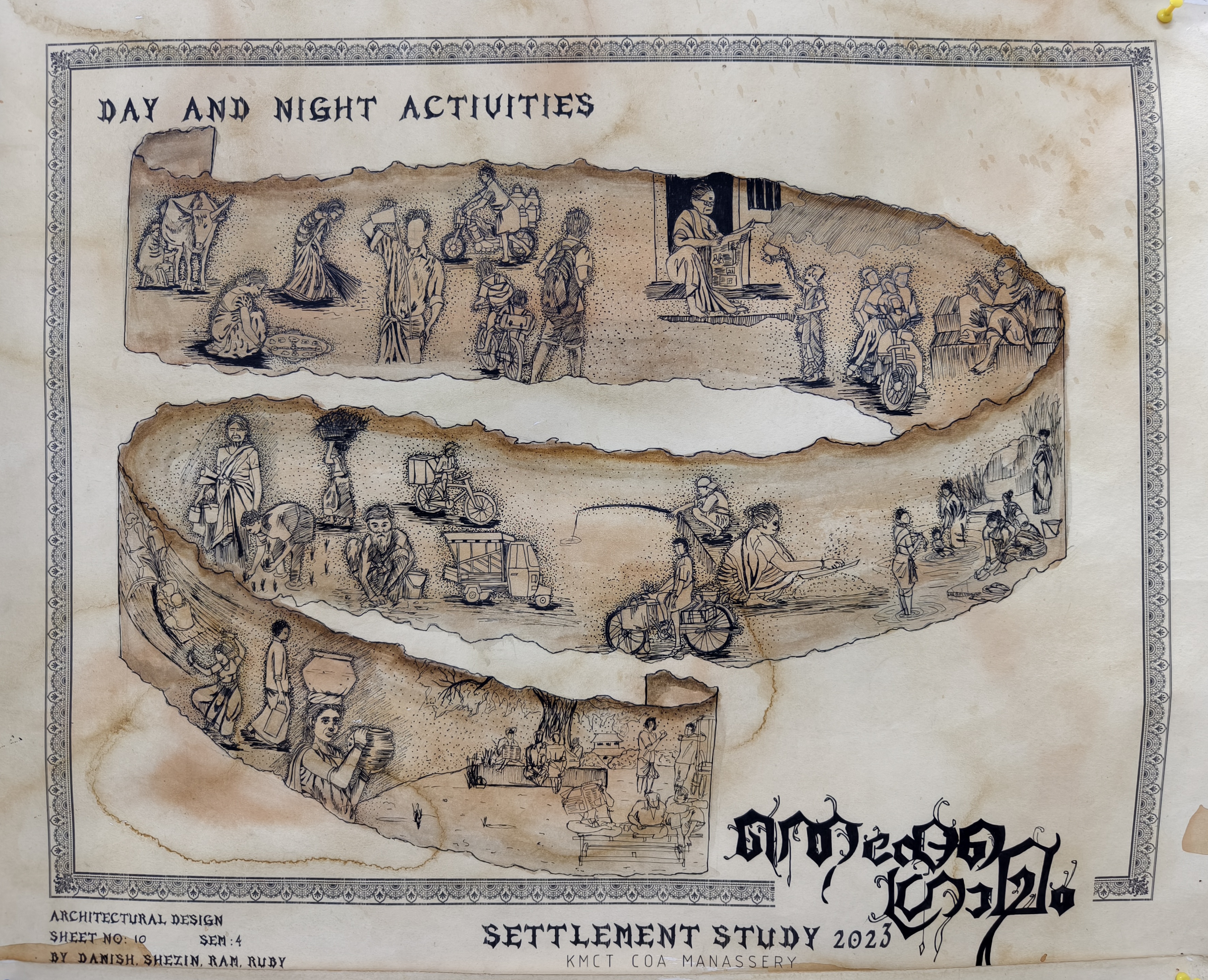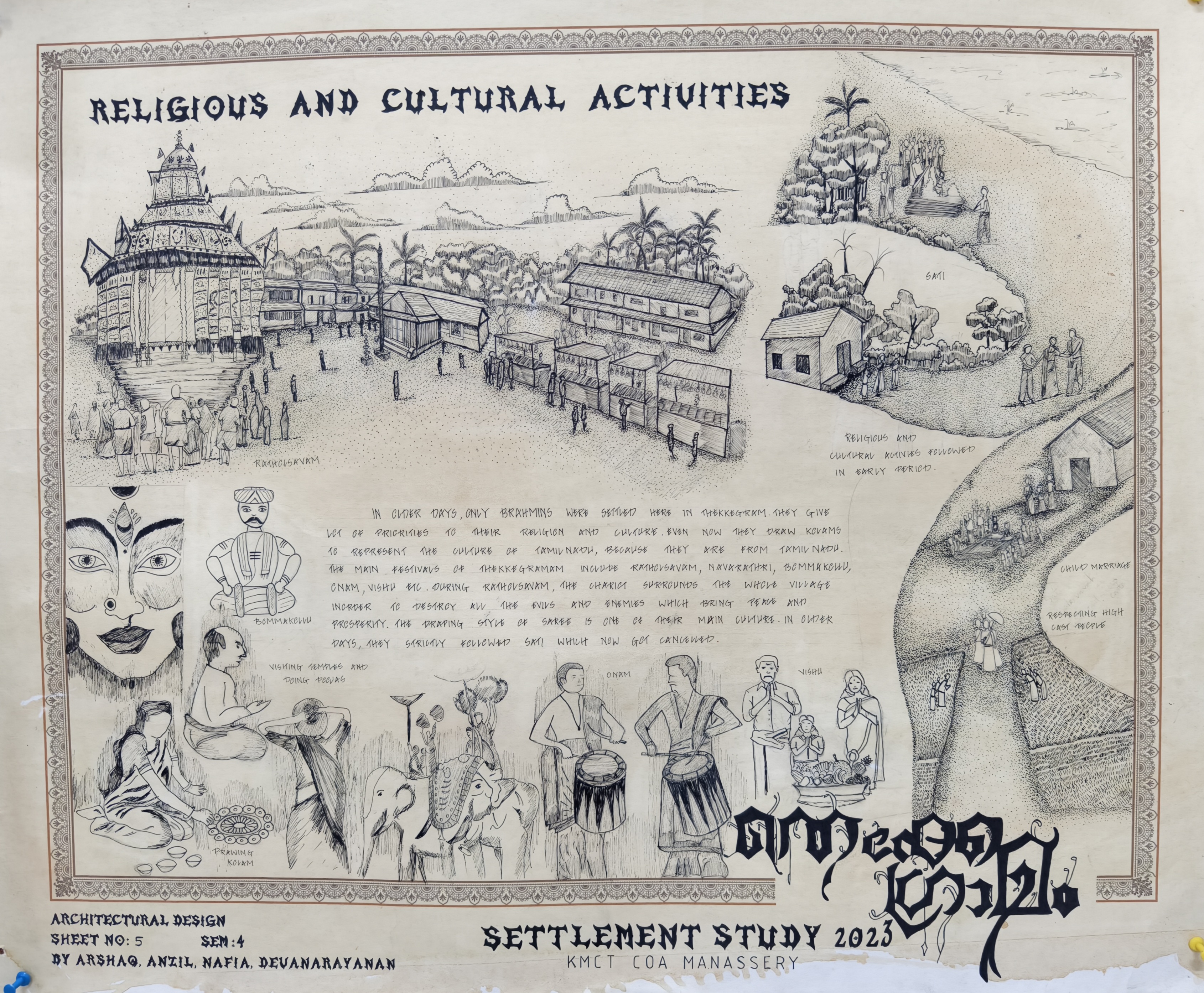 The Architectural Design Studio II, as part of the University of Calicut's curriculum, focused on exploring how socio-cultural, geographic, and economic factors shape both urban and rural environments. The studio particularly emphasized the organic development of urban settlements, analyzing the historical forces that have influenced city formation. Special attention was given to traditional settlements, such as Thekkegramam, a Brahmin settlement situated near a river, and other communities that evolved around temples.