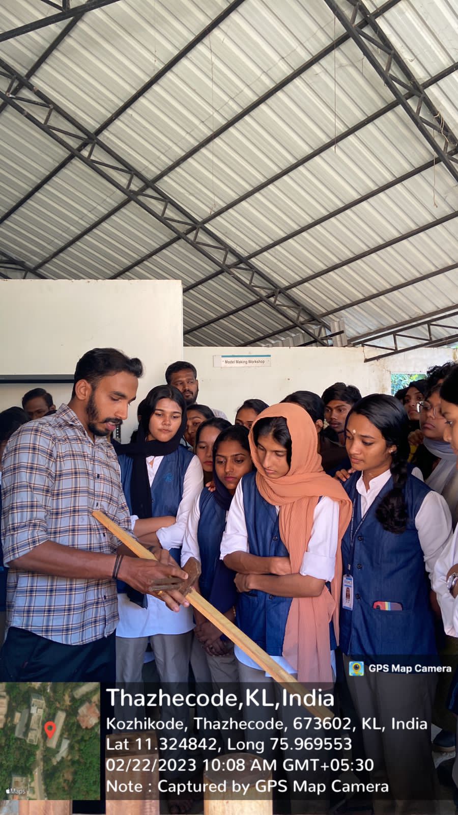 The one-day prototype Carpentry Workshop, led by expert Vishnu Prasad for 1st and 2nd semester architecture students, introduced them to the basics of woodworking and model-making. Through hands-on activities, students learned essential carpentry techniques, including cutting, shaping, and joining wood to create prototypes. Vishnu Prasad guided them in understanding the importance of precision, material properties, and craftsmanship in architectural design. This immersive workshop provided students with a foundational skill set in carpentry, enhancing their ability to create physical models and explore design concepts through hands-on experimentation